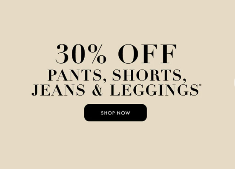 30% OFF PANTS, SHORTS, JEANS & LEGGINGS